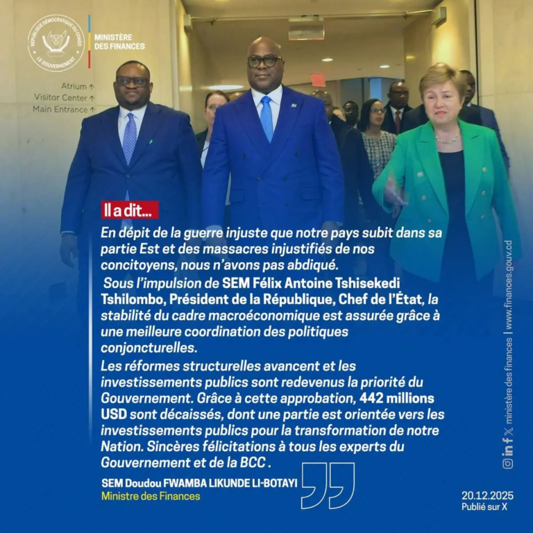 Le Ministre des Finances, Doudou Fwamba dans la délégation officielle conduite par le Président de la République, Félix Tshisekedi à une rencontre